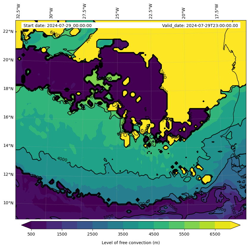 - Level of free convection (m)