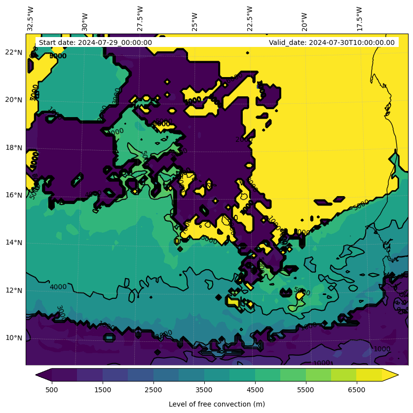 - Level of free convection (m)