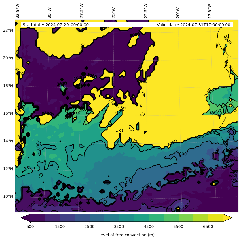 - Level of free convection (m)