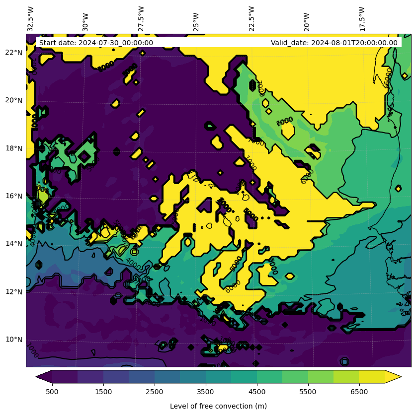 - Level of free convection (m)