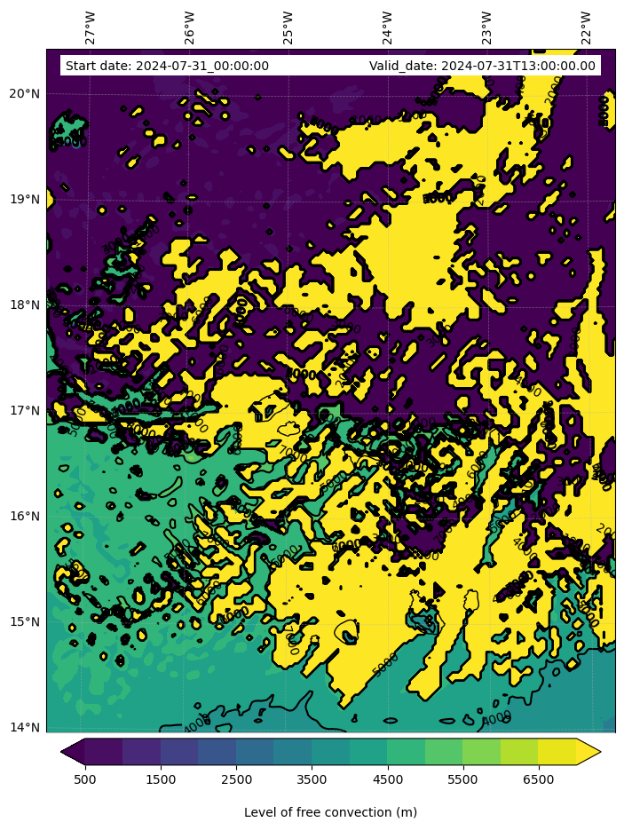 - Level of free convection (m)