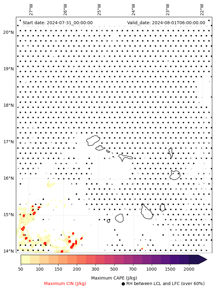 • Maximum CAPE (J/Kg)