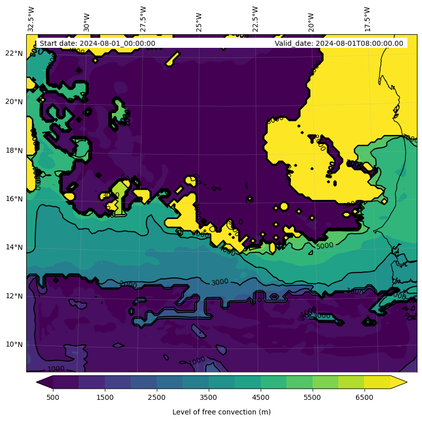 - Level of free convection (m)