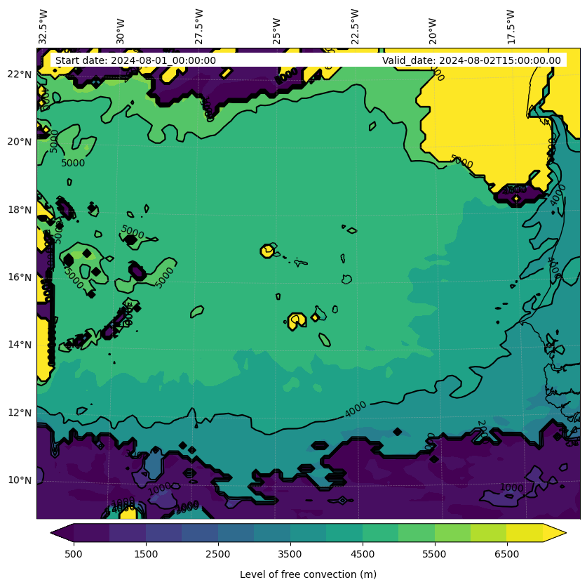 - Level of free convection (m)