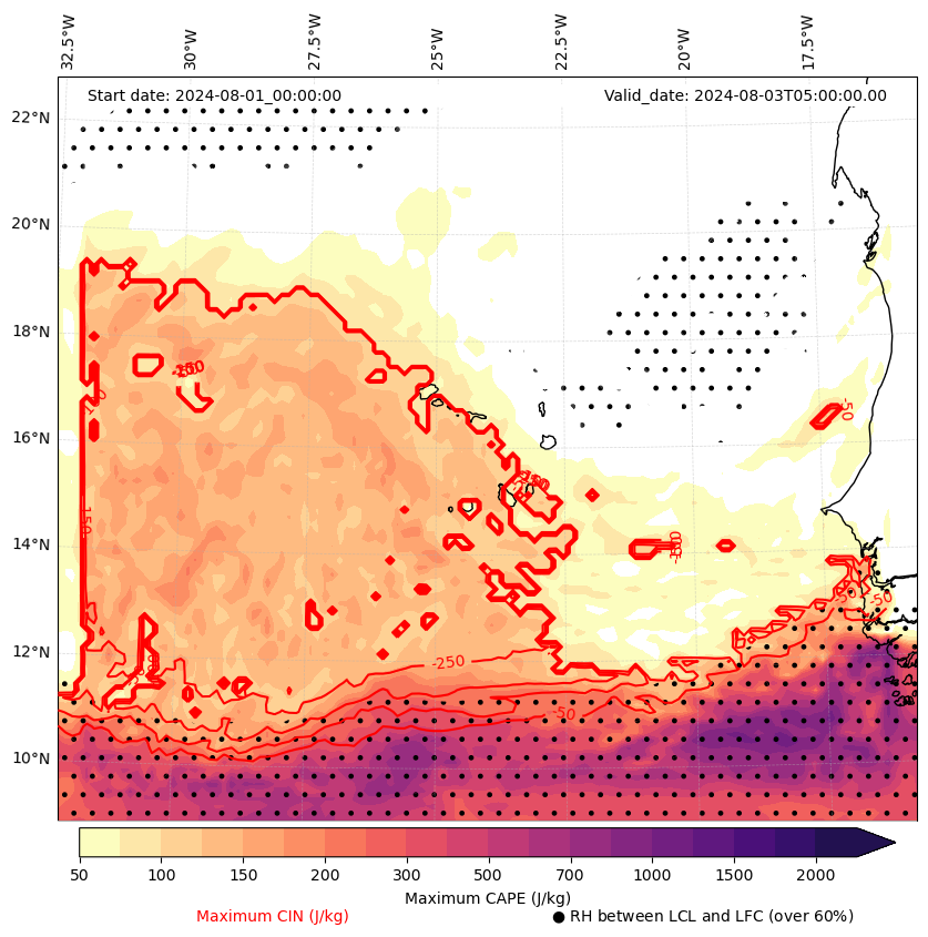 - Maximum CAPE (J/Kg)