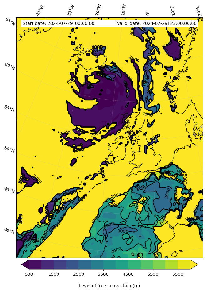 - Level of free convection (m)