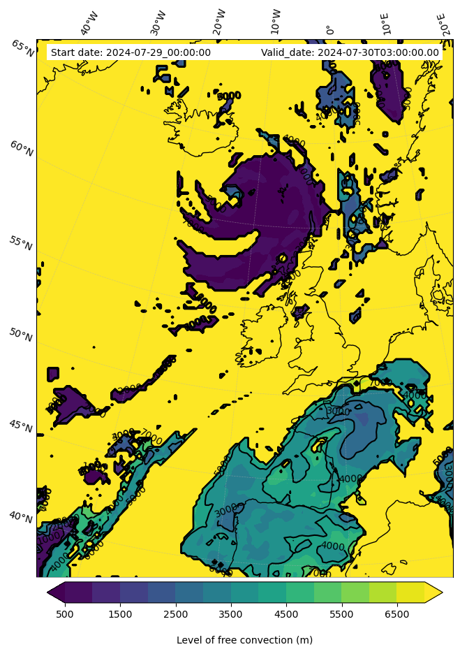 • Level of free convection (m)