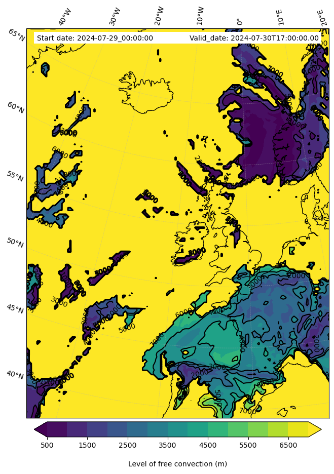 - Level of free convection (m)