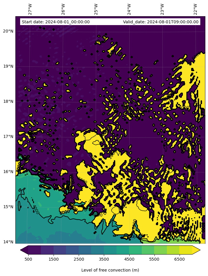 • Level of free convection (m)
