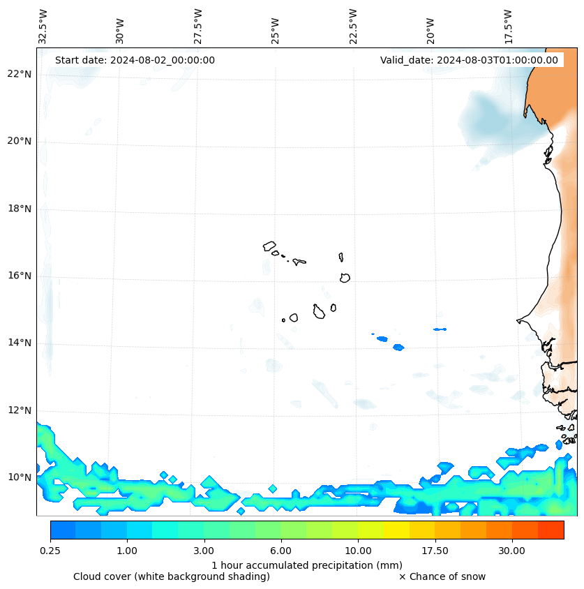 - Snow mixing ratio (g kg¯¹)