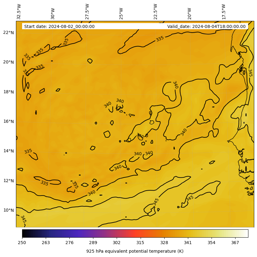 - Equivalent Potential Temperature (K)