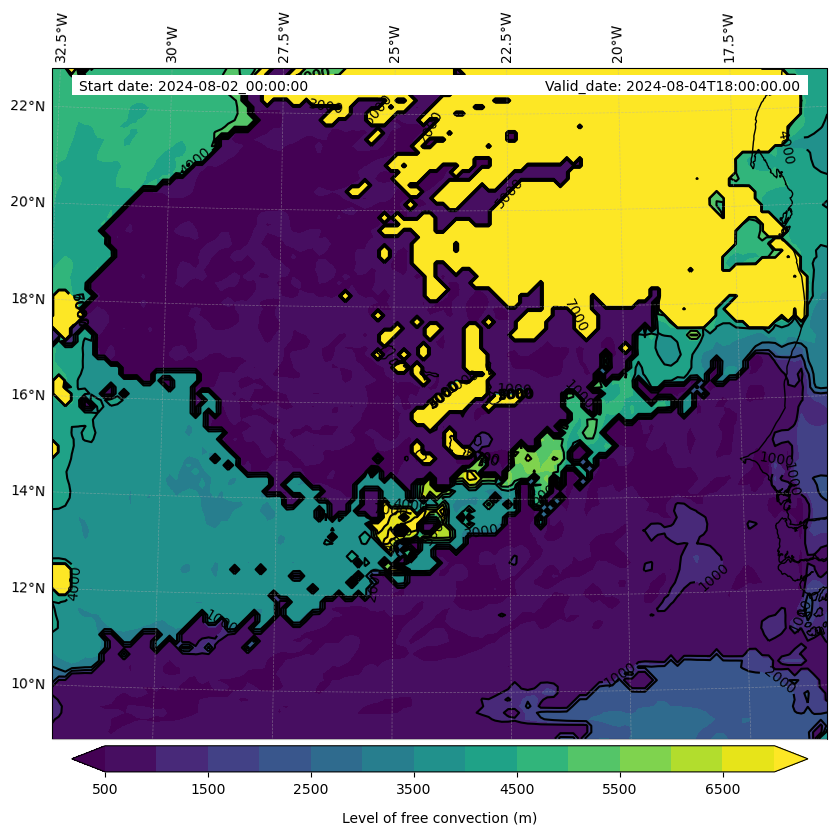 - Level of free convection (m)