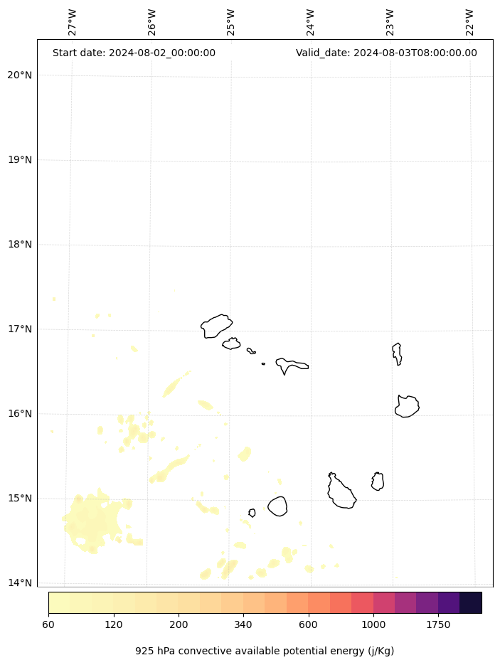 - Maximum CAPE (J/Kg)