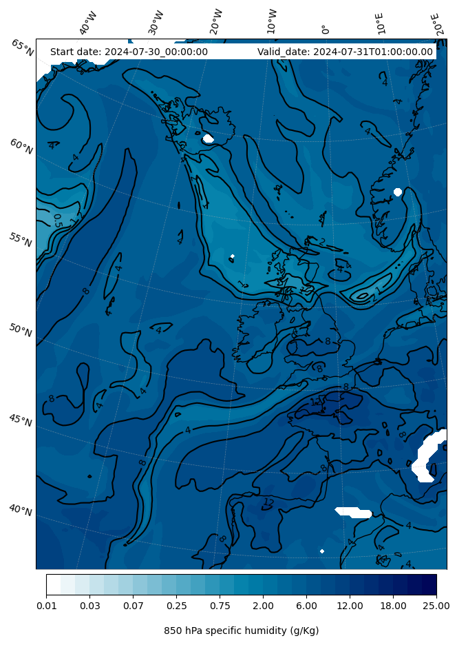 - Water vapor mixing ratio (g kg¯¹)