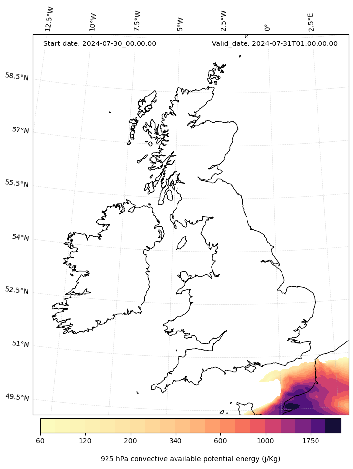 - Maximum CAPE (J/Kg)