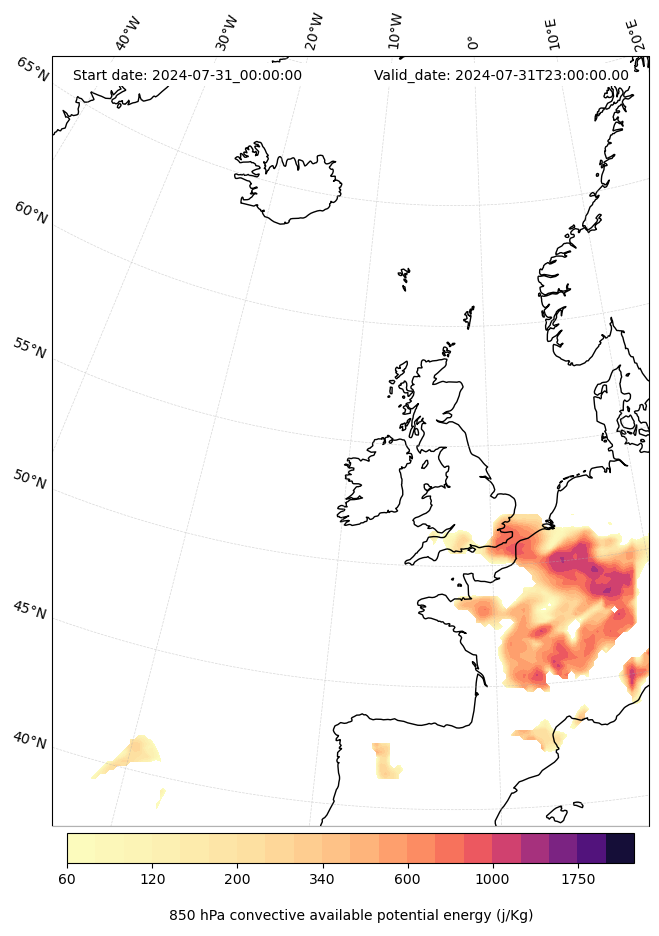 - Maximum CAPE (J/Kg)