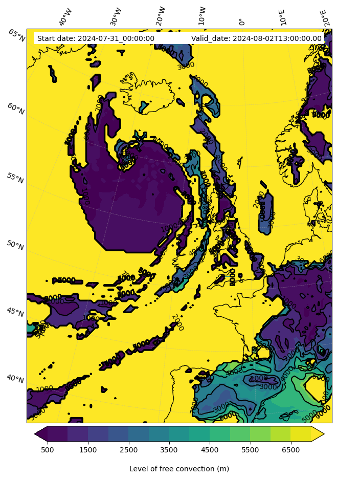 - Level of free convection (m)
