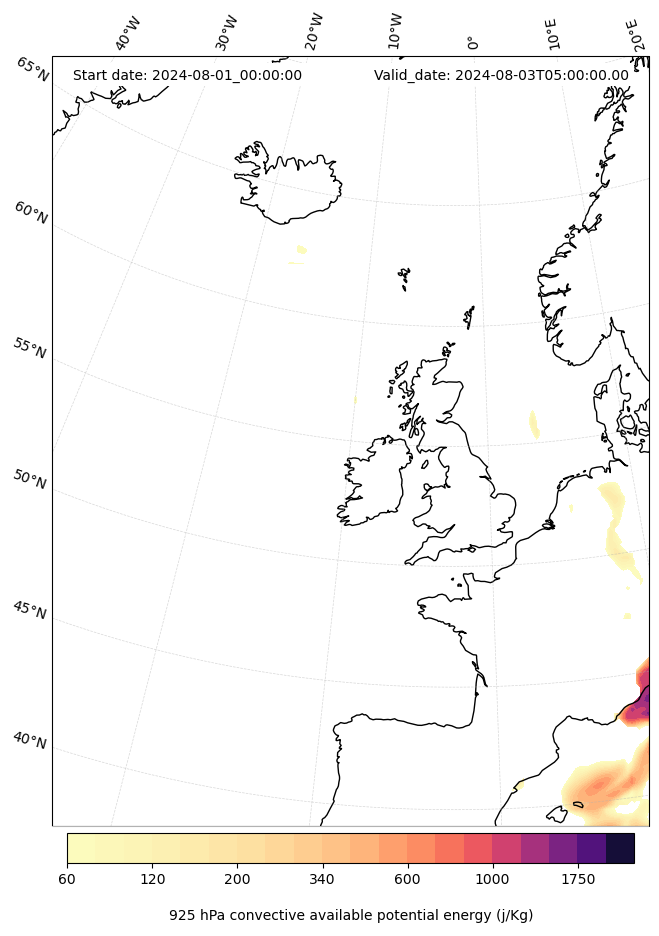 - Maximum CAPE (J/Kg)