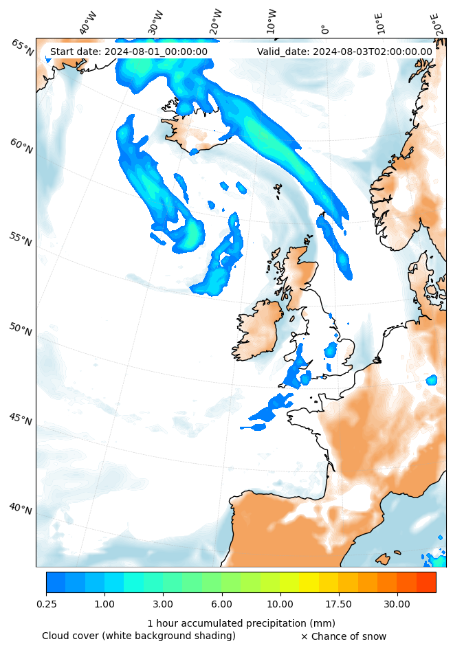 - Snow mixing ratio (g kg¯¹)