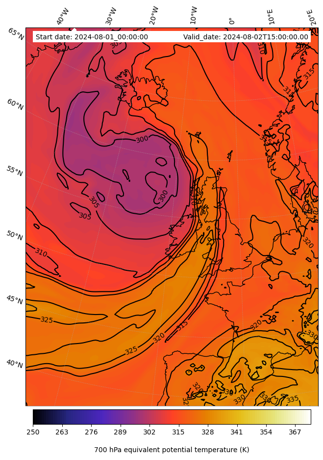 - Equivalent Potential Temperature (K)
