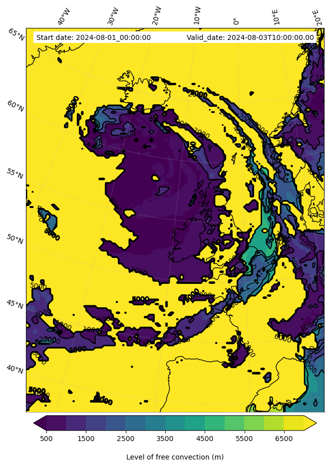 • Level of free convection (m)