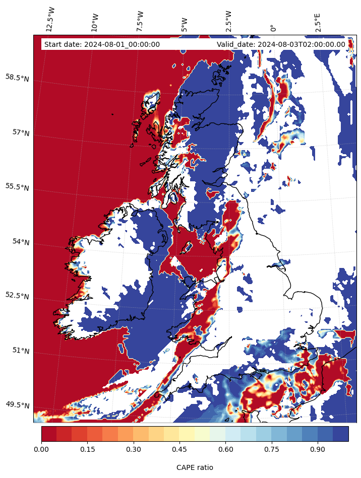 - Maximum CAPE (J/Kg)