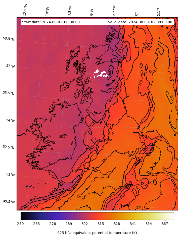- Equivalent Potential Temperature (K)