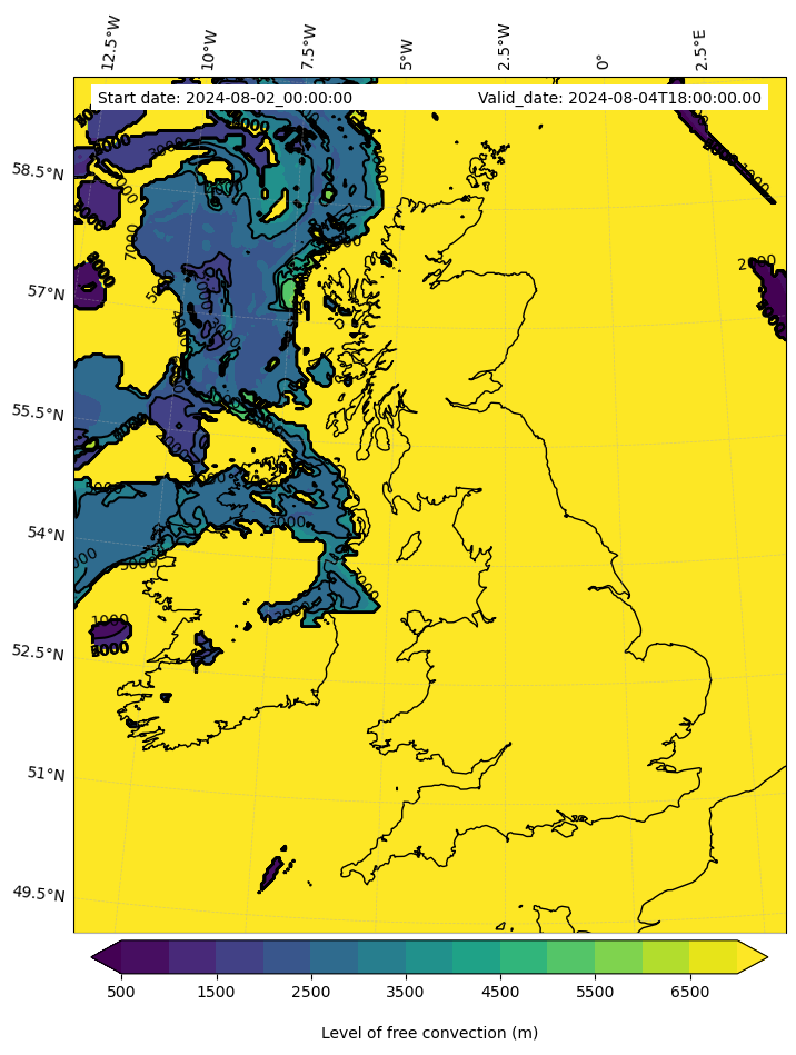 - Level of free convection (m)