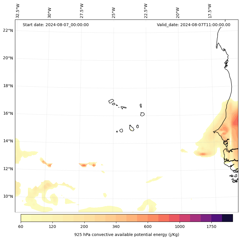 - Maximum CAPE (J/Kg)