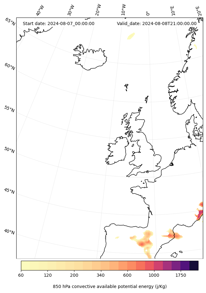 - Maximum CAPE (J/Kg)