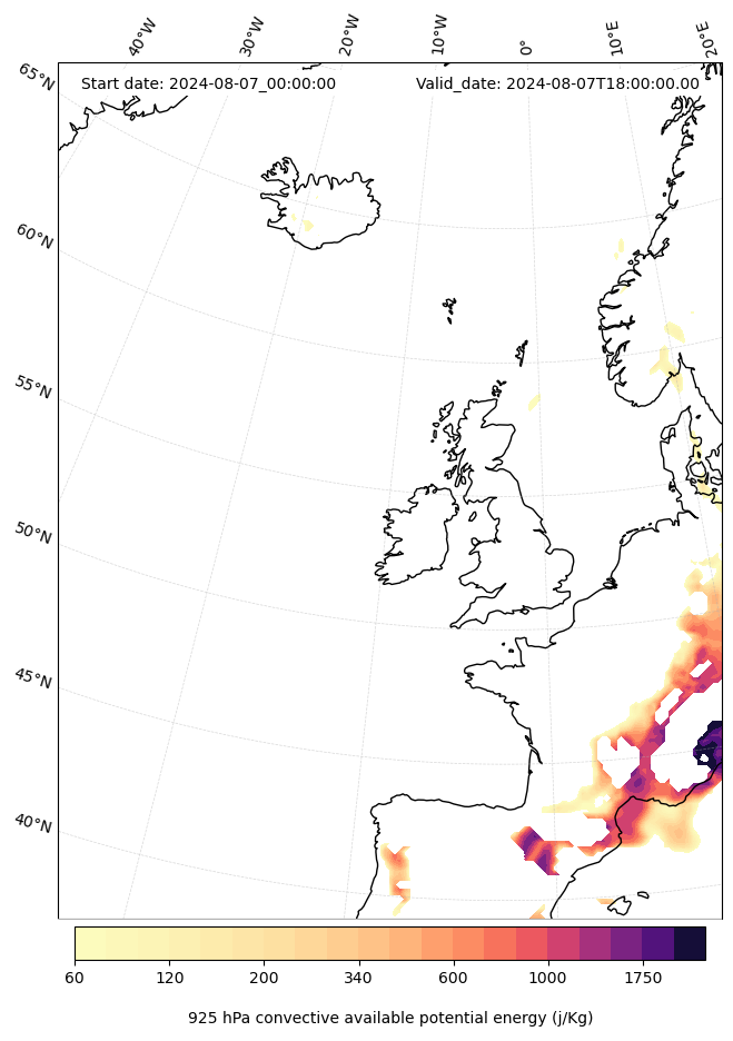 - Maximum CAPE (J/Kg)