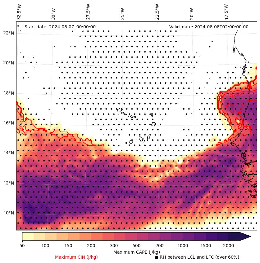 • Maximum CAPE (J/Kg)