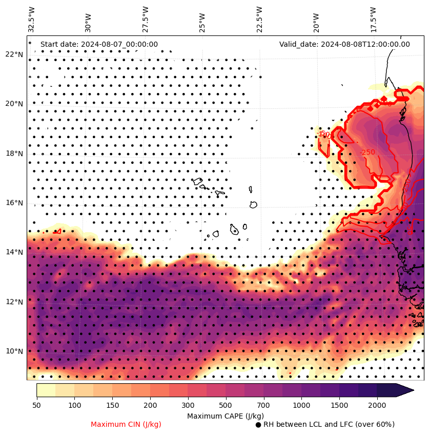 • Maximum CAPE (J/Kg)