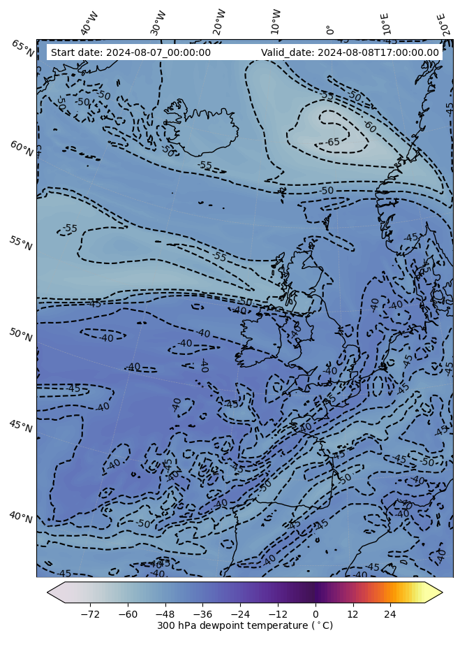 - Water vapor mixing ratio (g kg¯¹)- 300 hPa