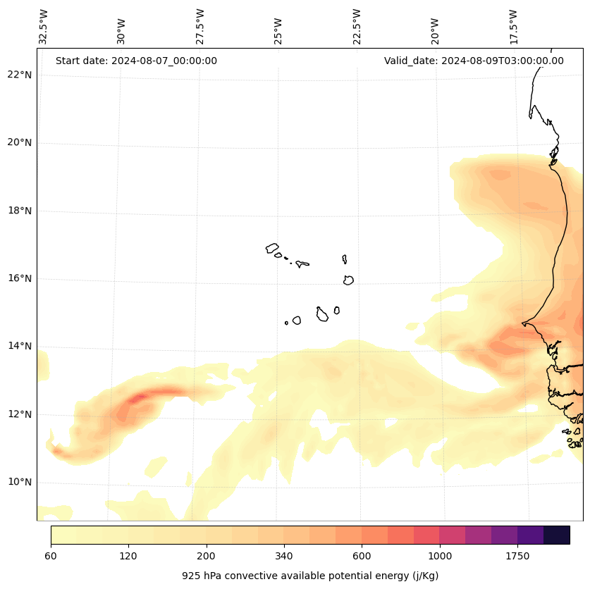 - Maximum CAPE (J/Kg)