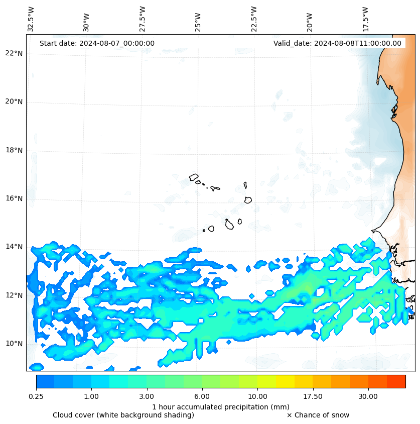- Snow mixing ratio (g kg¯¹)