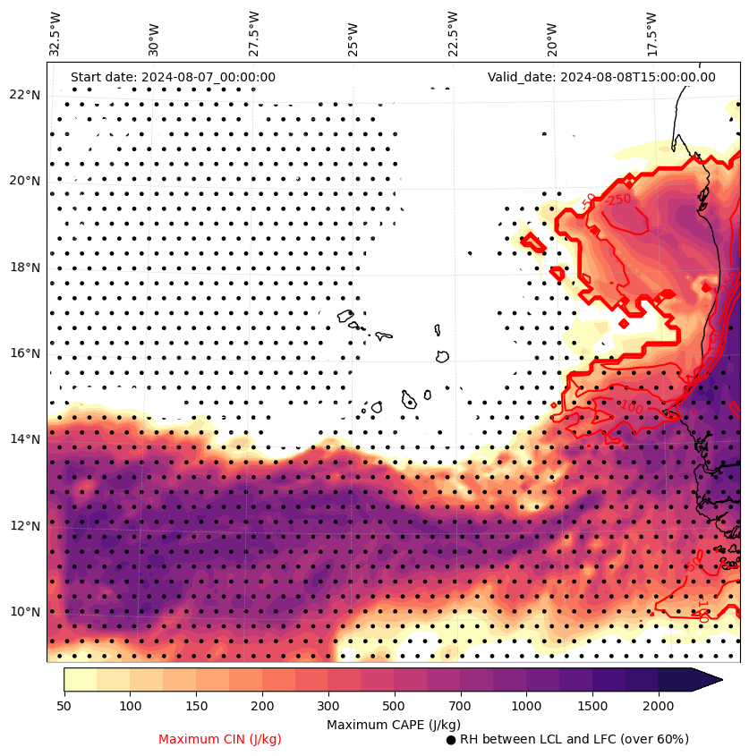 • Maximum CAPE (J/Kg)