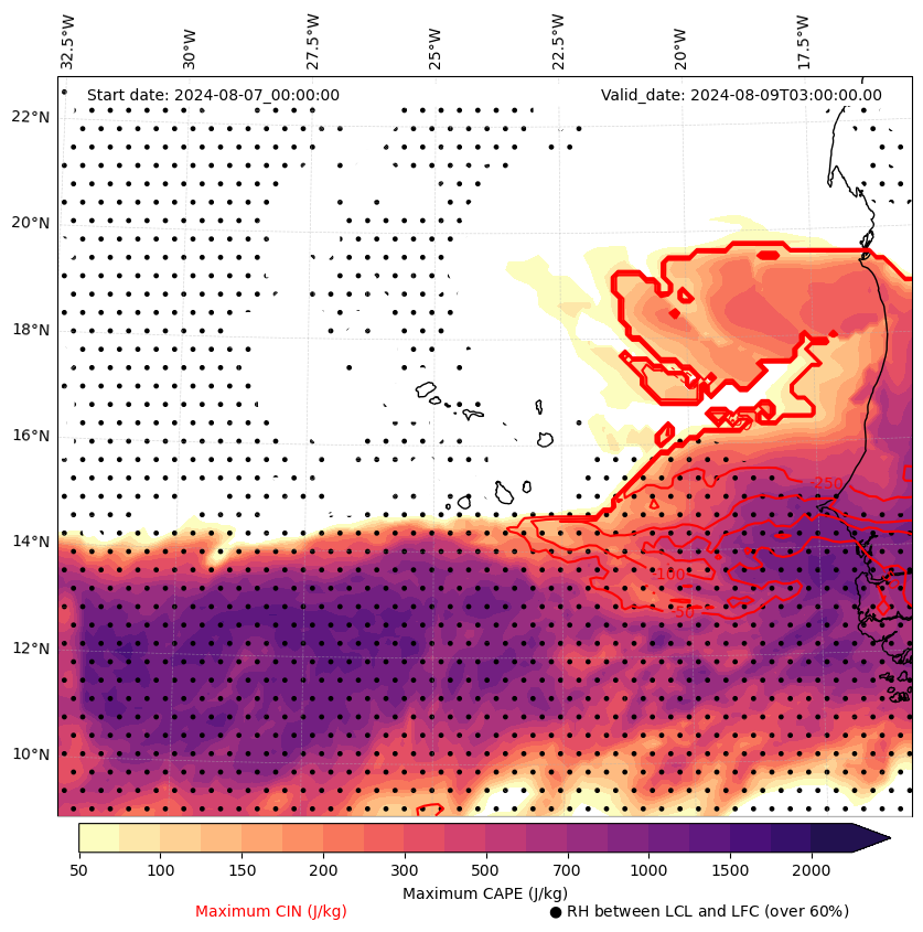 - Maximum CAPE (J/Kg)