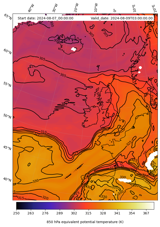 - Equivalent Potential Temperature (K)