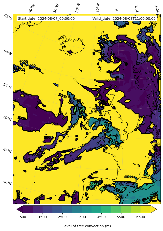 • Level of free convection (m)