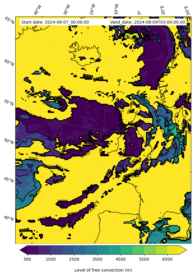 • Level of free convection (m)