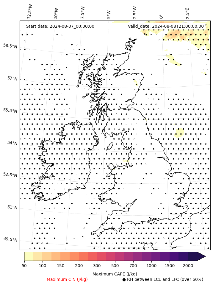 • Maximum CAPE (J/Kg)