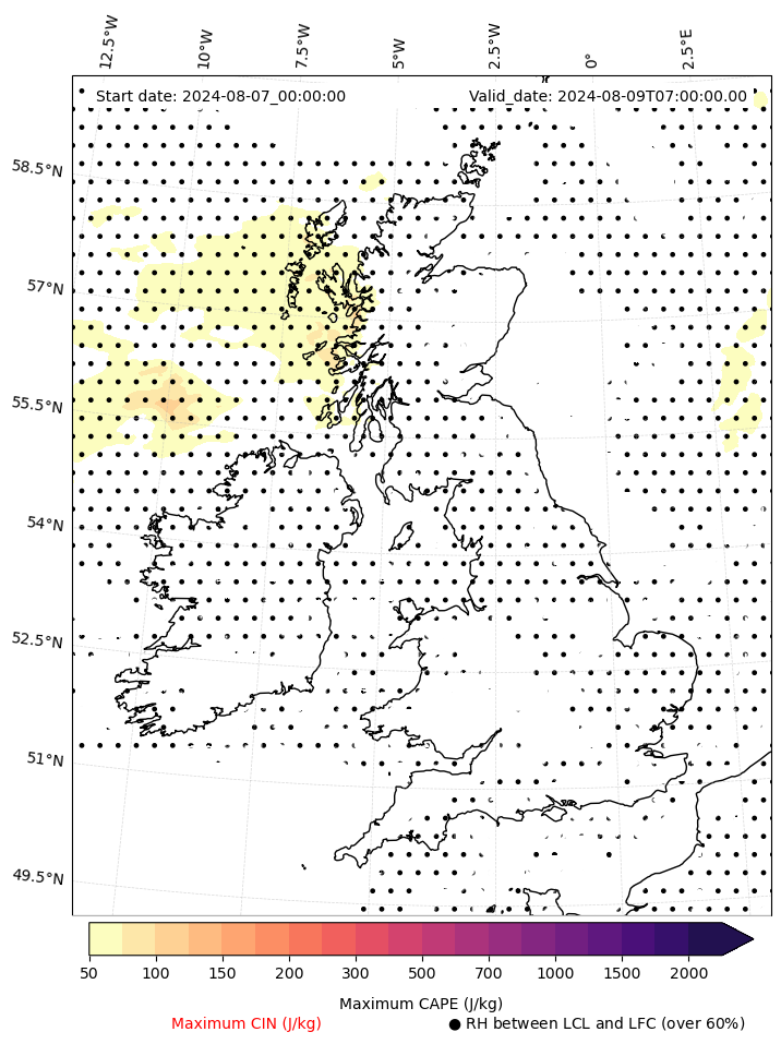 - Maximum CAPE (J/Kg)