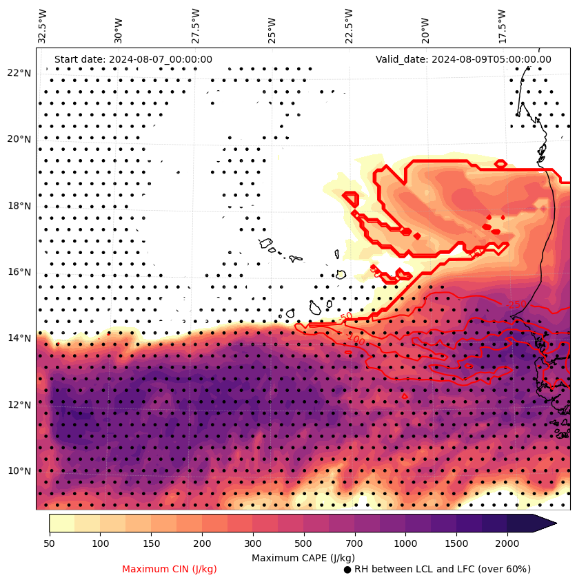 • Maximum CAPE (J/Kg)