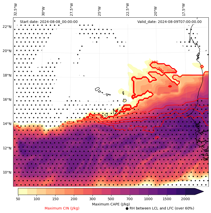 • Maximum CAPE (J/Kg)