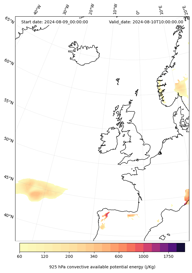 - Maximum CAPE (J/Kg)
