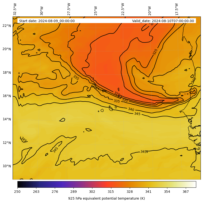 - Equivalent Potential Temperature (K)