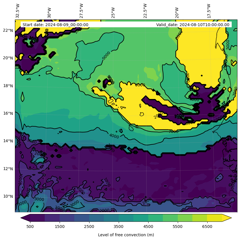 - Level of free convection (m)