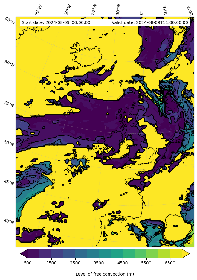 - Level of free convection (m)
