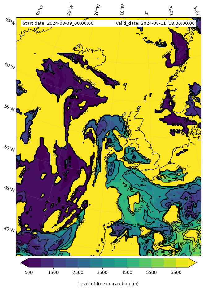 • Level of free convection (m)